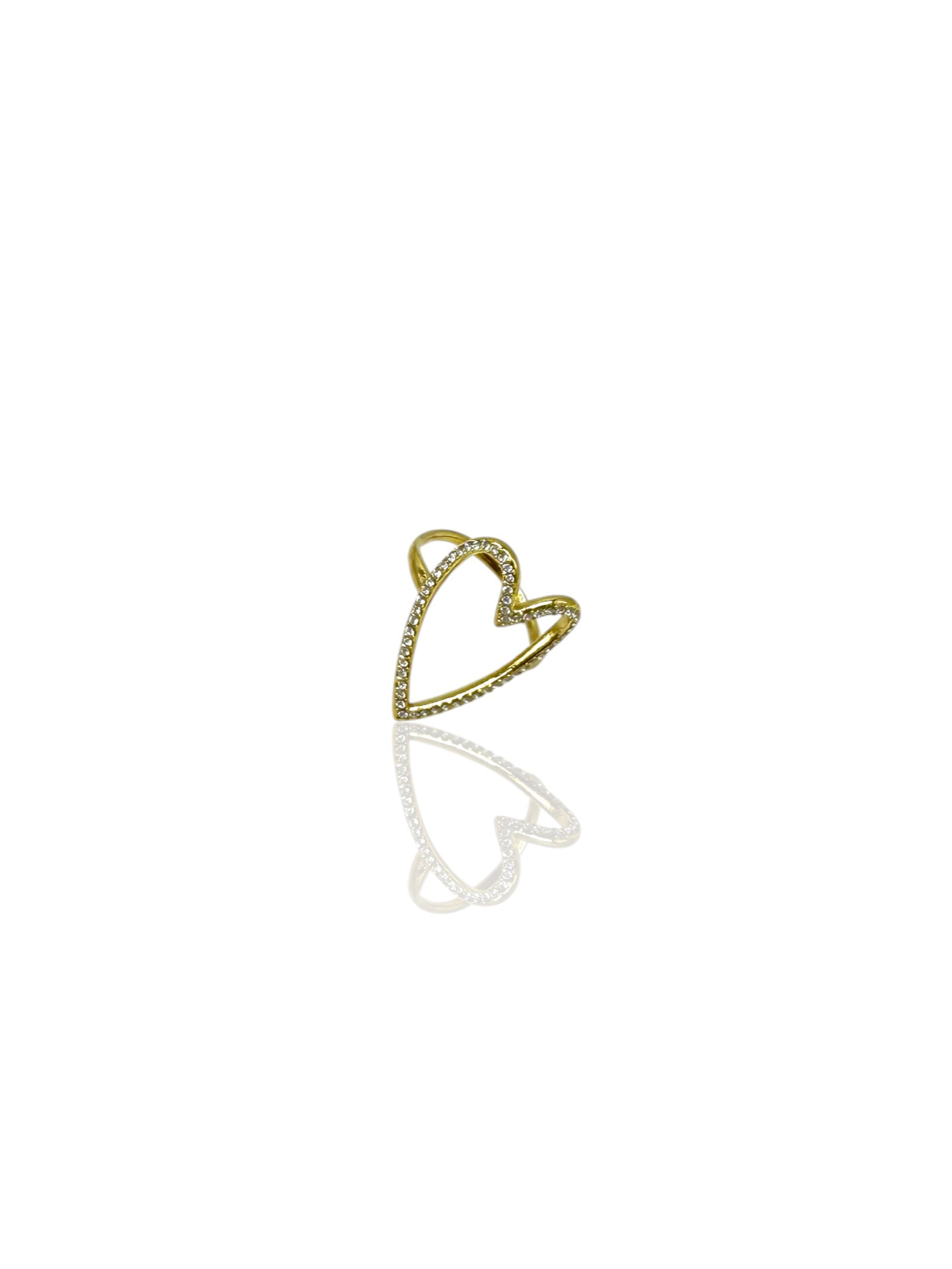 Anello dorato con cuore vuoto impreziosito da pavé di piccoli cristalli luminosi. Romantico e moderno.