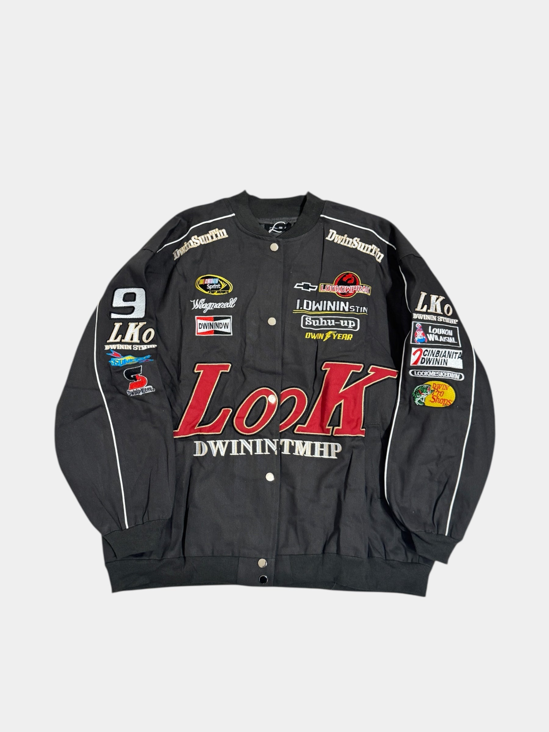 Il design è arricchito da patch e stampe a contrasto sul fronte e sulle maniche, che richiamano il mondo racing e college, donando personalità e carattere al capo.