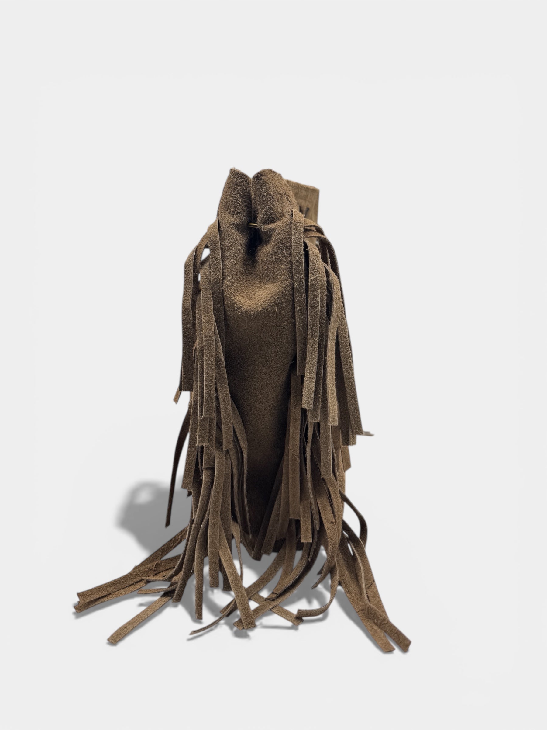 Questa borsa è realizzata in vera pelle scamosciata, morbida e vellutata al tatto, in una raffinata tonalità cuoio caldo.