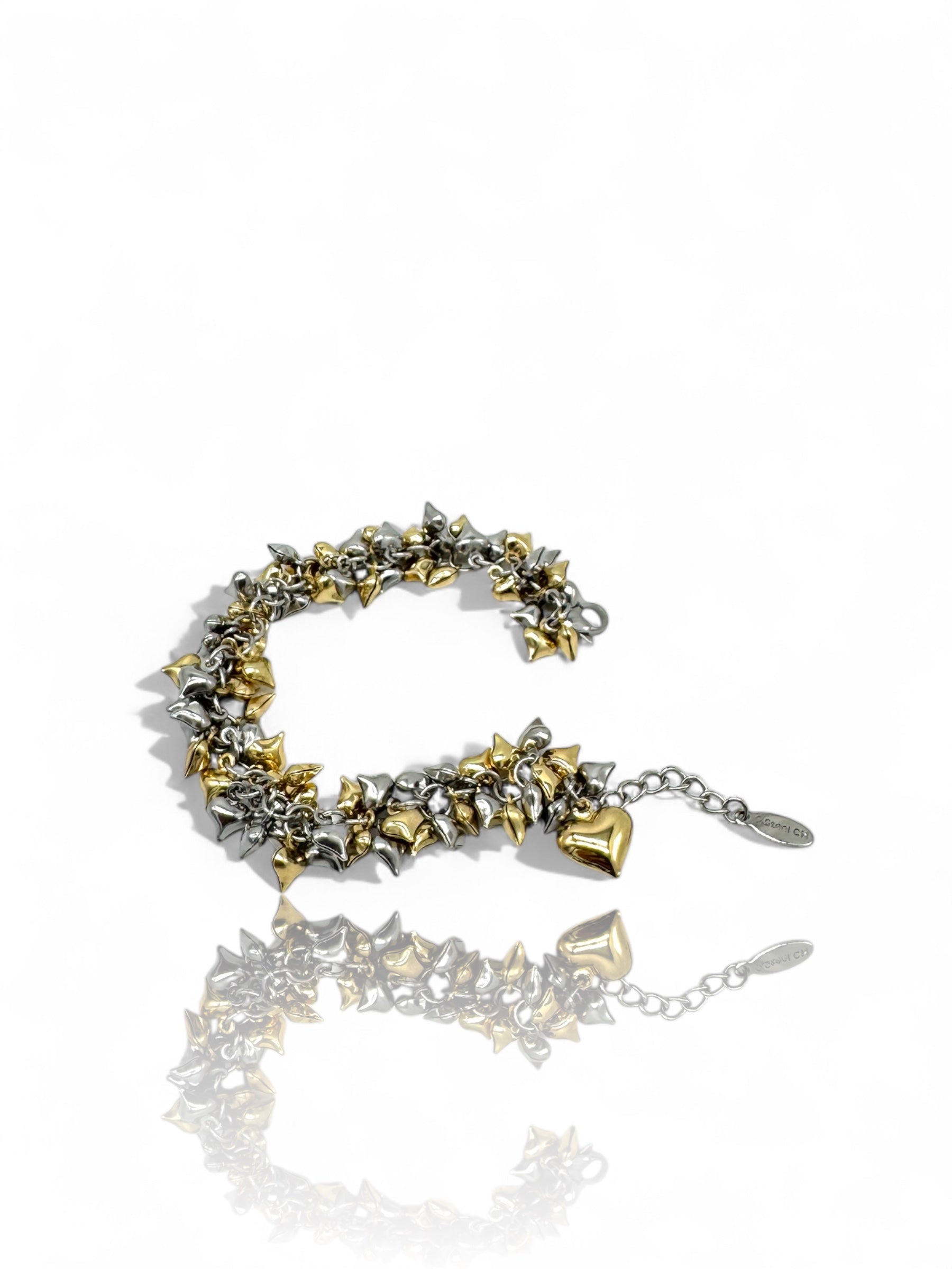 Realizzato con una fitta alternanza di piccoli elementi cuori in argento e oro — crea un effetto luminoso e dinamico.