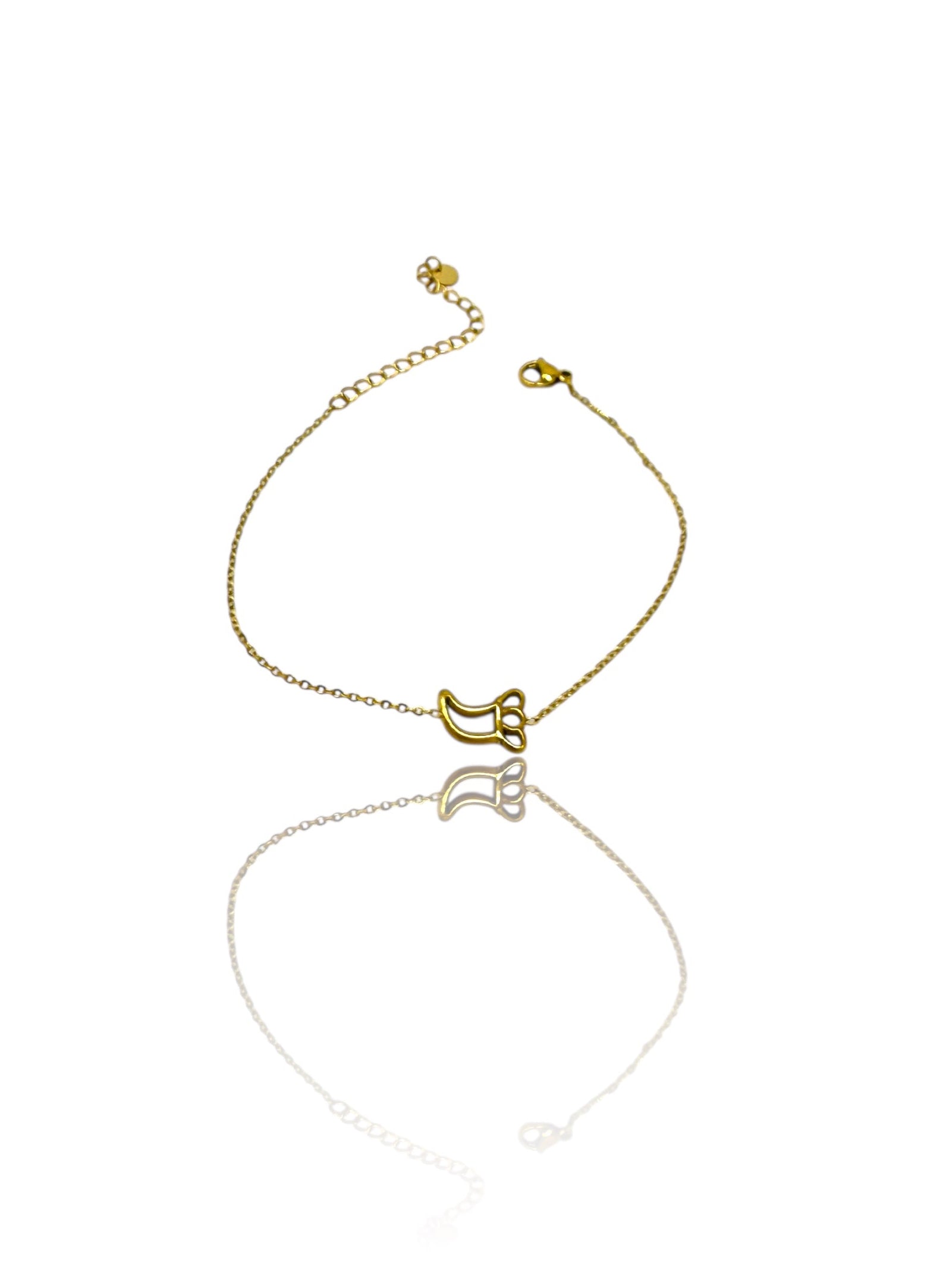 Questo bracciale è un gioiello dal design raffinato e minimalista. Realizzato in acciaio inox dorato, presenta una catenina sottile con chiusura regolabile e un delicato charm centrale a forma di cornetto, simbolo di fortuna.