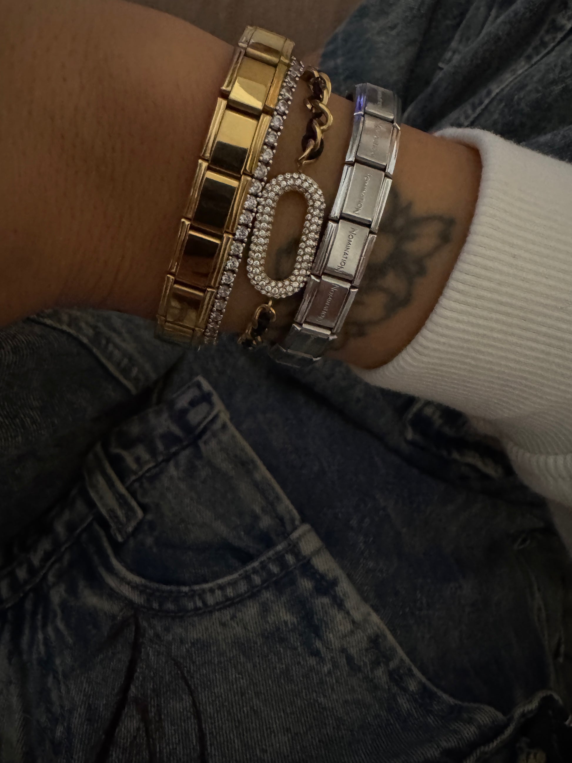 Il design minimal e moderno lo rende perfetto da indossare da solo oppure da abbinare ad altri bracciali per creare un mix personalizzato.
