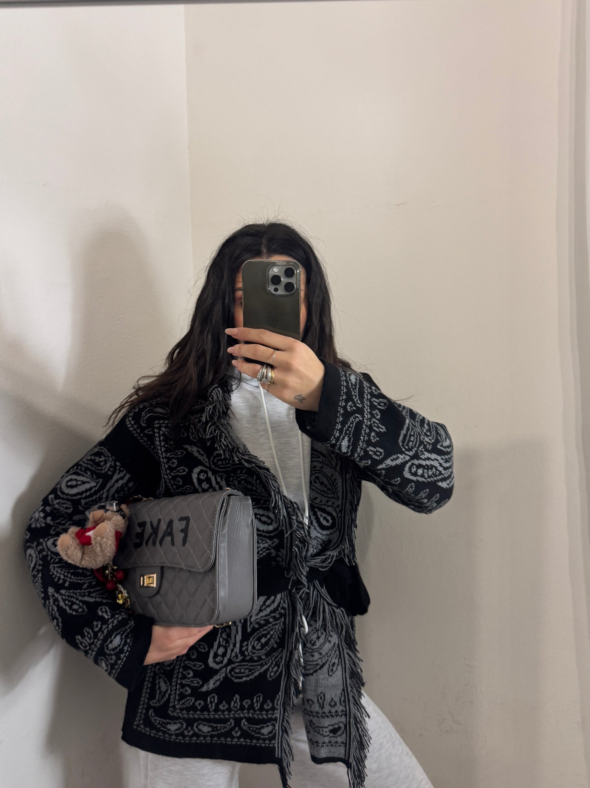 Cardigan jacquard con frange – carattere boho chic