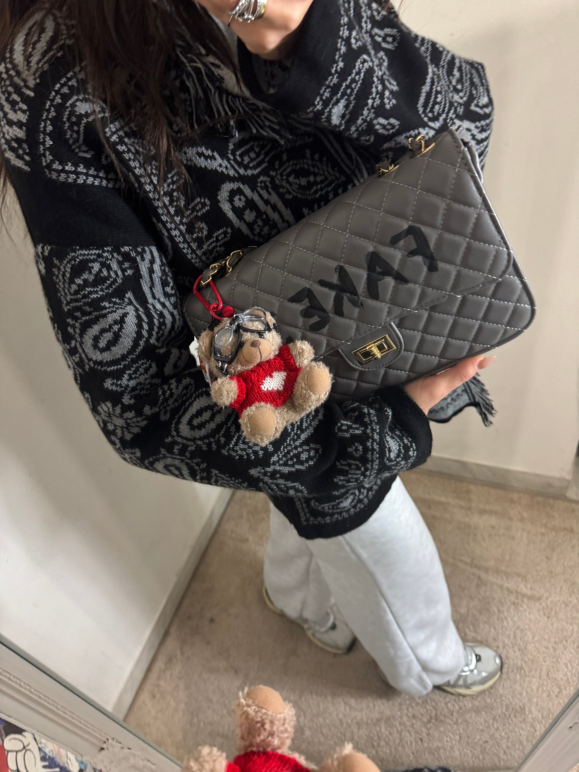 Un cardigan dal forte carattere, capace di trasformare anche il look più semplice. La lavorazione jacquard con motivo ornamentale dona personalità e movimento, mentre la linea morbida e avvolgente lo rende perfetto da indossare aperto, a strati.