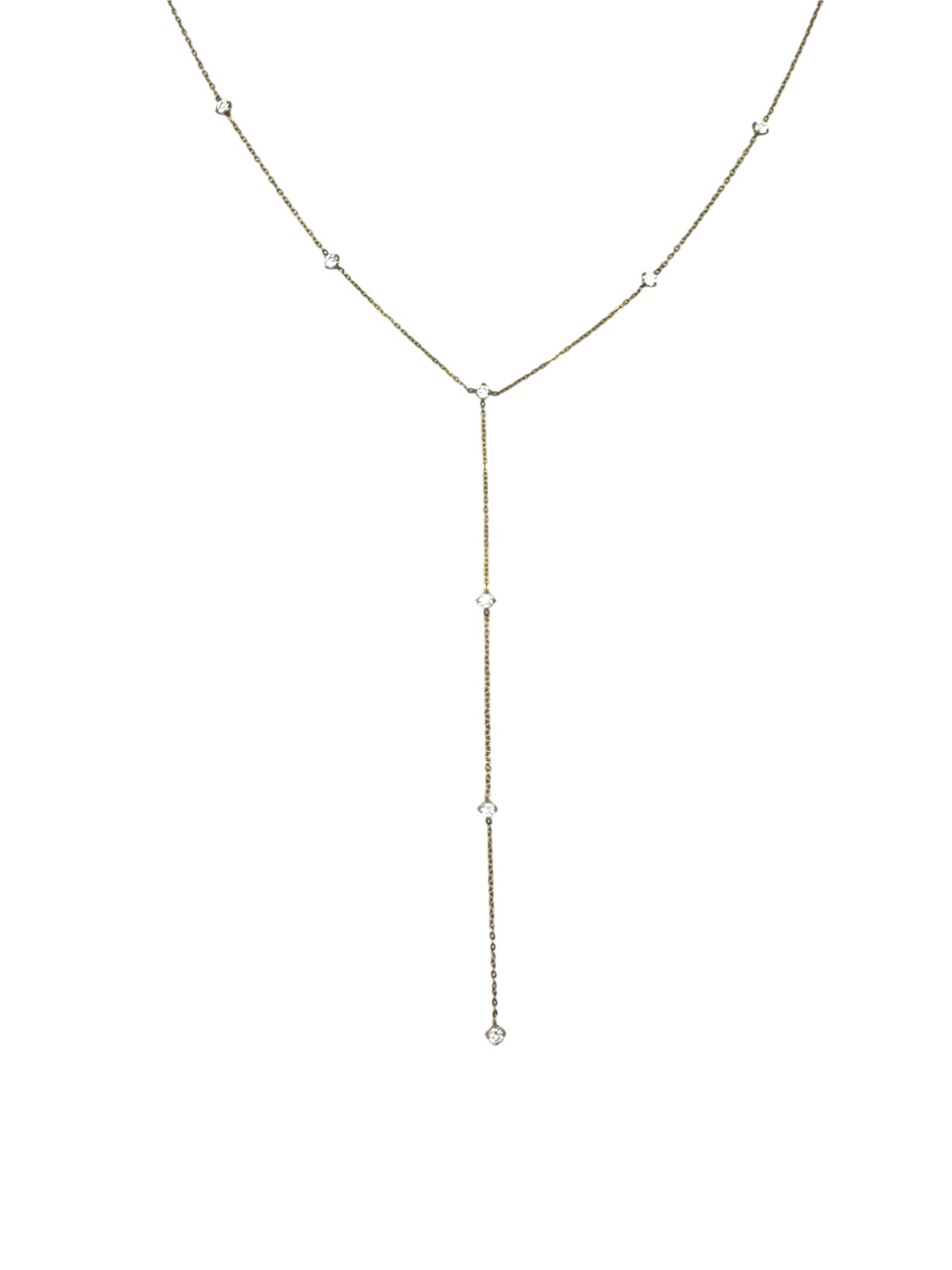 Collana a rosario con delicati punti luce incastonati lungo la catena dorata. Il design a “Y” con cascata di cristalli illumina il décolleté con eleganza e raffinatezza. Un gioiello versatile, perfetto per ogni occasione.