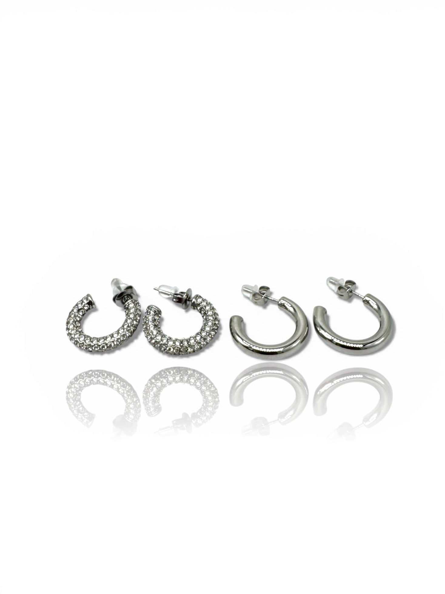 Set di due paia di orecchini a cerchio, pensato per giocare con gli abbinamenti e adattarsi a ogni momento della giornata.