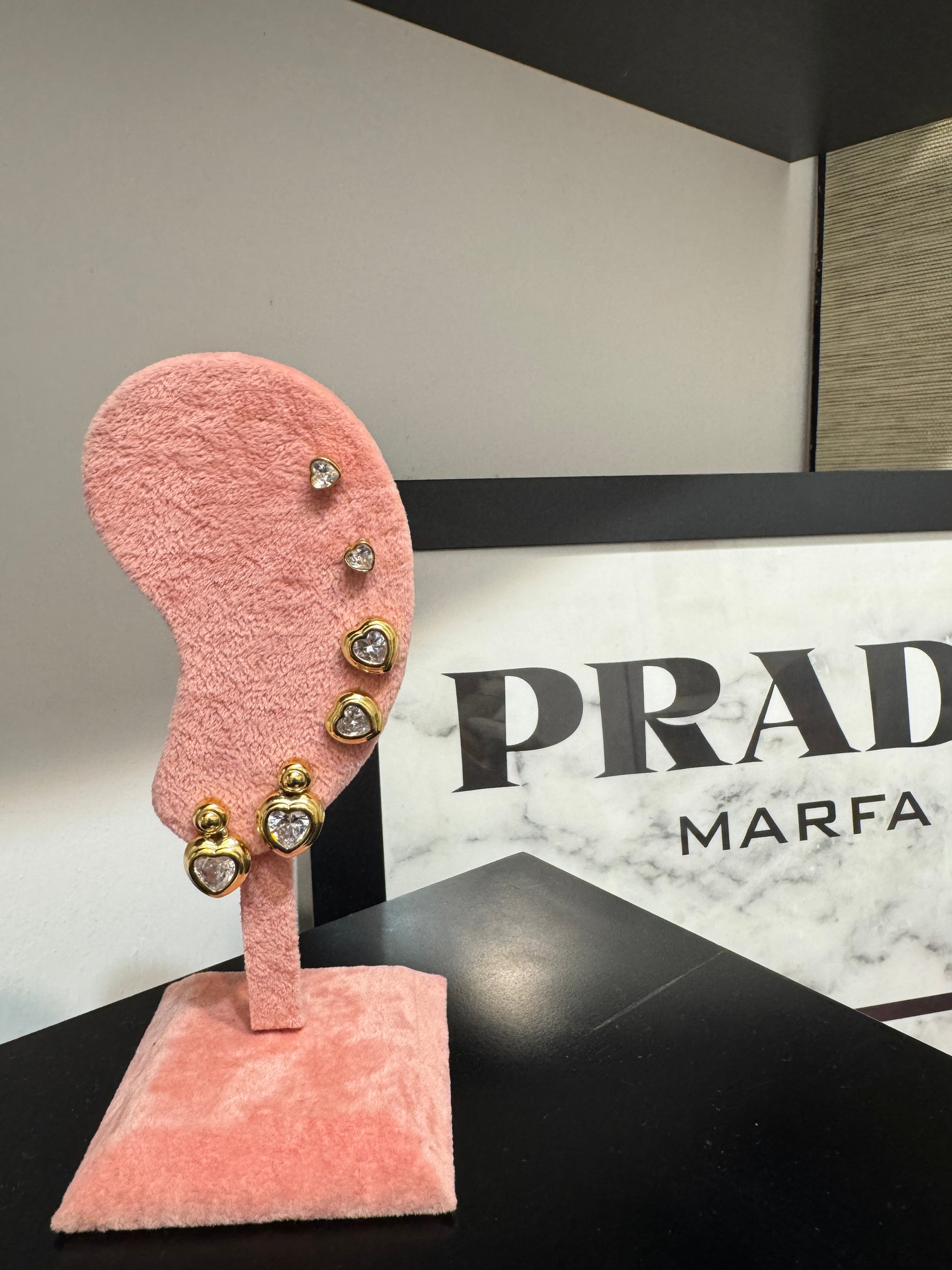 Set di 6 orecchini a cuore, composto da tre coppie diverse per dimensione e stile. Ogni orecchino è impreziosito da un cuore luminoso con pietra brillante, incorniciato da una montatura morbida e delicata che esalta la luce.