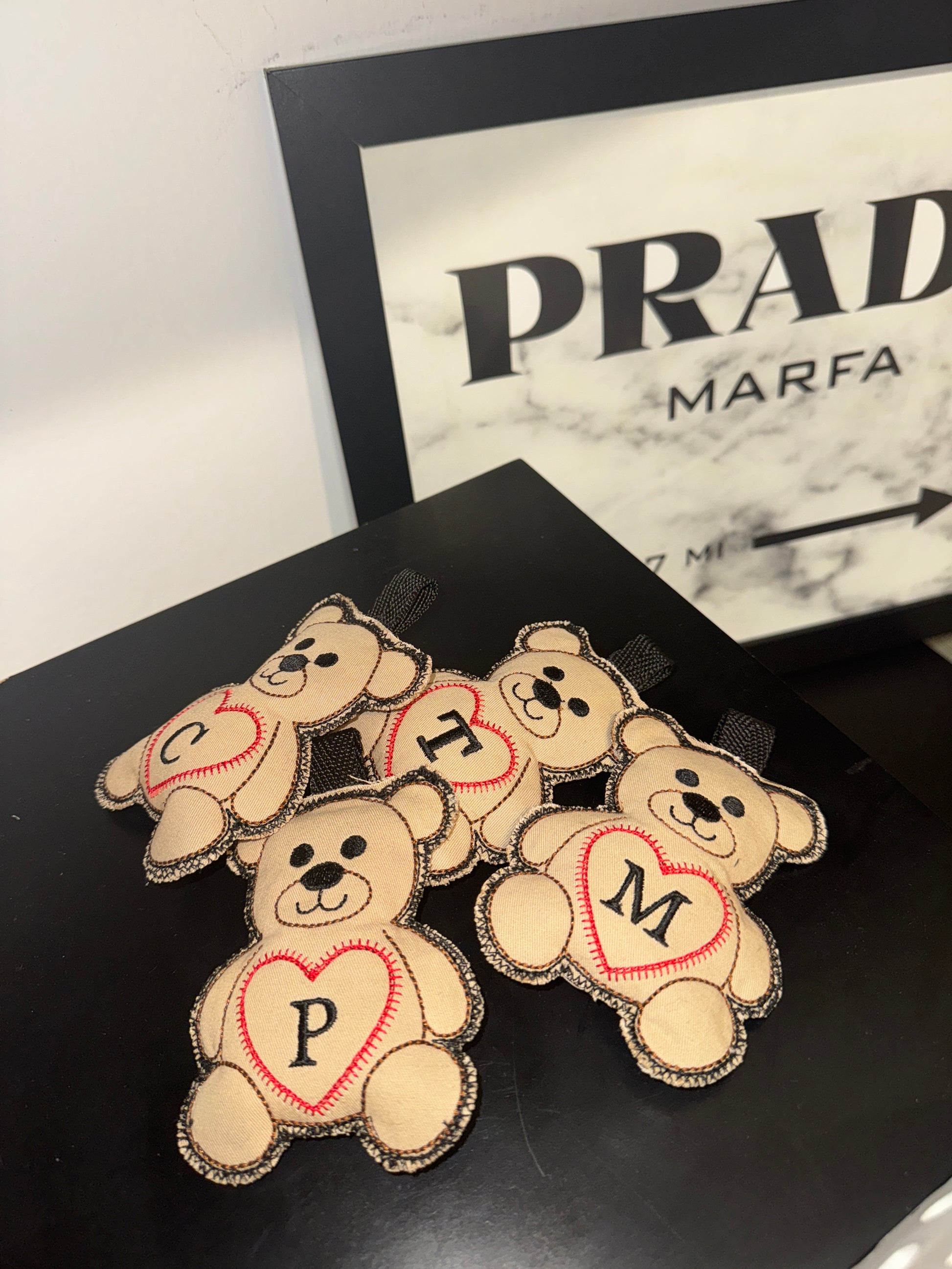 - Charm: Teddy Unica realizzato a mano, con cuore e iniziale personalizzabile